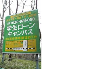 お詫びとして、下の画像。馬場の学生ローンがここまで触手を伸ばすとは・・・!中大に来て、この看板を見るとは思わなかった。どうせなら、わせ弁の看板も設置すればいいのに。